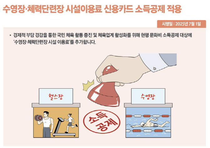 - 공제대상 확대: 수영장, 헬스장, 요가, 필라테스 등 체육시설 이용료 포함